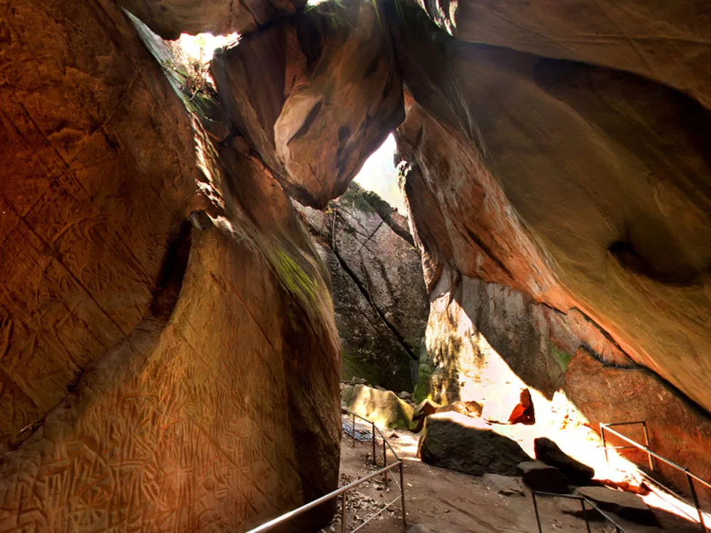 Edakkal Caves are a remarkable archaeological site with prehistoric rock engravings over 6,000 years old, offering a rare glimpse into ancient human civilization and making it a must-visit for history and archaeology enthusiasts.